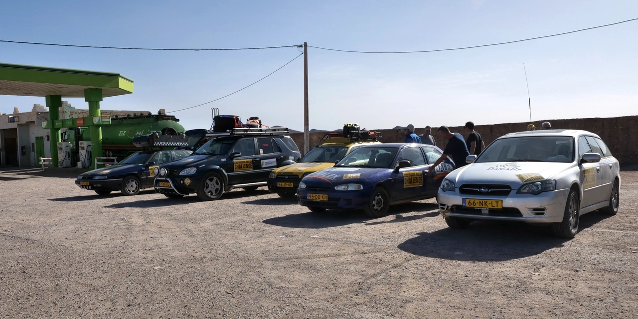 We rijden de tocht over de weg samen met vier andere teams: Les Verts in een Citroën XM met aan boord Wouter en Tom Groenen, Gas Erop in een Mercedes ML met aan boord Peter Pijnenburg en Diny Anssems, Rotorheads in een Subaru Legacy, met aan boord Geert de Rover en Fred Wesseling en Colt Case in een Mitsubishi Colt met aan boord Daniël Bruinsma en Tim van der Krul.